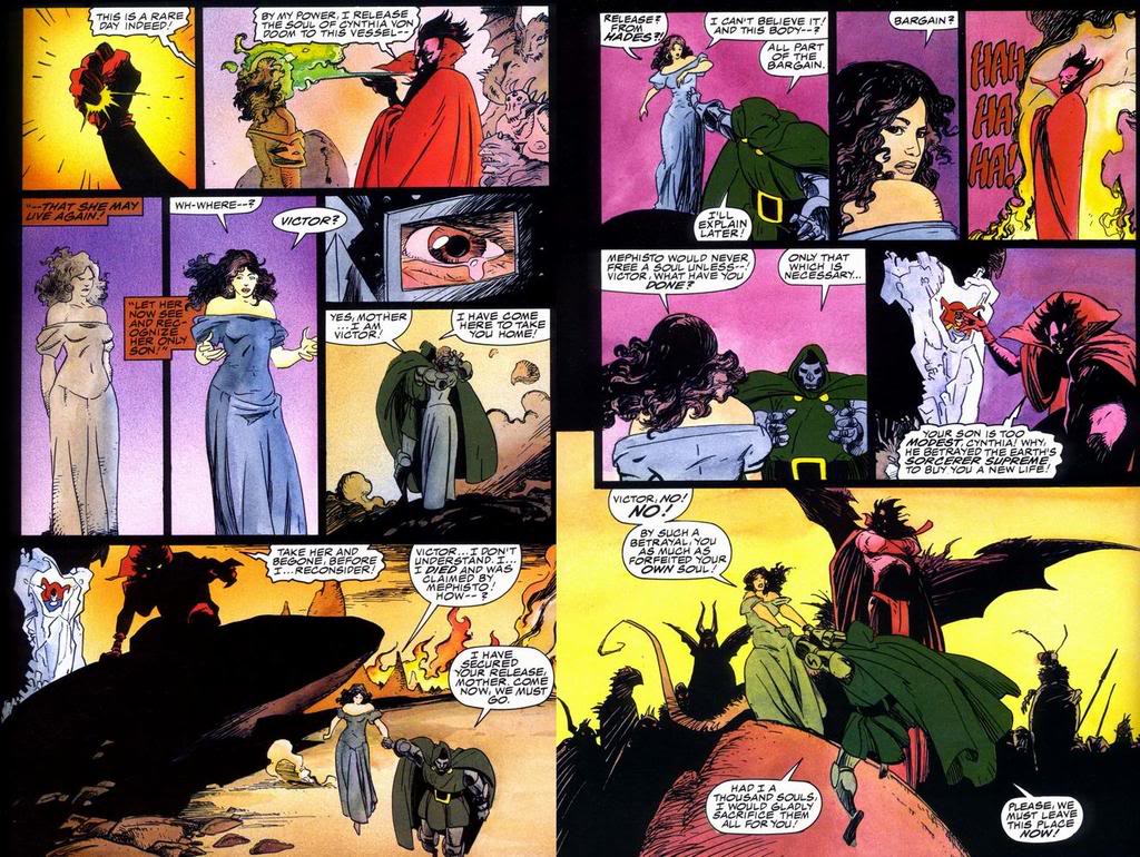Every year on Midsummer’s Eve, Victor von Doom clashes with the forces of evil in a vain attempt to free his mother’s soul from Hell. Only when Doctor Stephen Strange — Master of the Mystic Arts and Earth’s Sorcerer Supreme — is convinced to join the fight, does the outcome have any hope of changing. But first these unlikely allies must journey to Mephisto’s infernal realm … where they find that the cost of one soul may be more than they are willing to pay!